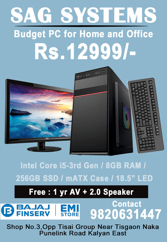 Best Budget Desktop PC i5 3rd Gen with 22" LED for Office & Home